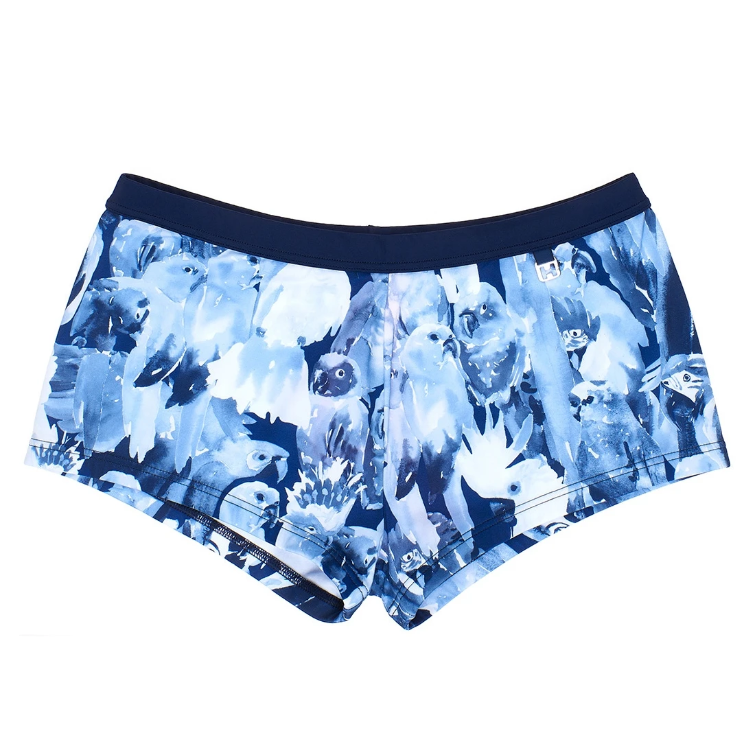 Shorty de bain PAPAGAYO  coloré et fun de la saison. Grâce à son imprimé multicolore de perroquets sur fond bleu effet peinture acrylique et aquarelle, ce shorty de bain pour homme réveille votre côté arty dans une ambiance tropicale acidulée pour un look fashion pointu.