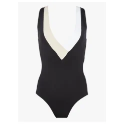 Par ailleurs, ce maillot de bain décolleté tricolore offre un contraste de couleur grâce à son croisement subtile sur le décolleté, afin de révéler un véritable jeu de symétrie.