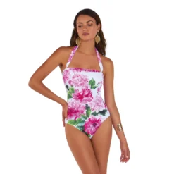 Maillot de bain une piece bustier fleuri imprimé rose chic et tendance Roidal